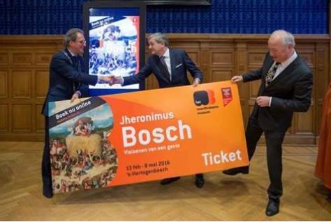 Met de lancering van tickets.hnbm.nl is gisteren de online kaartverkoop van ‘Jheronimus Bosch – Visioenen van een genie’ formeel van start. Deze overzichtstentoonstelling is van 13 februari tot en met 8 mei 2016 te zien in Het Noordbrabants Museum in ’s-Hertogenbosch. Door vooraf online tickets te kopen, verzekeren bezoekers zich van toegang tot de tentoonstelling op een door hen gewenste dag en tijdstip. Met een symbolische handeling gaf Ton Rombouts, burgemeester van ’s-Hertogenbosch, een feestelijk startschot aan de online kaartverkoop.